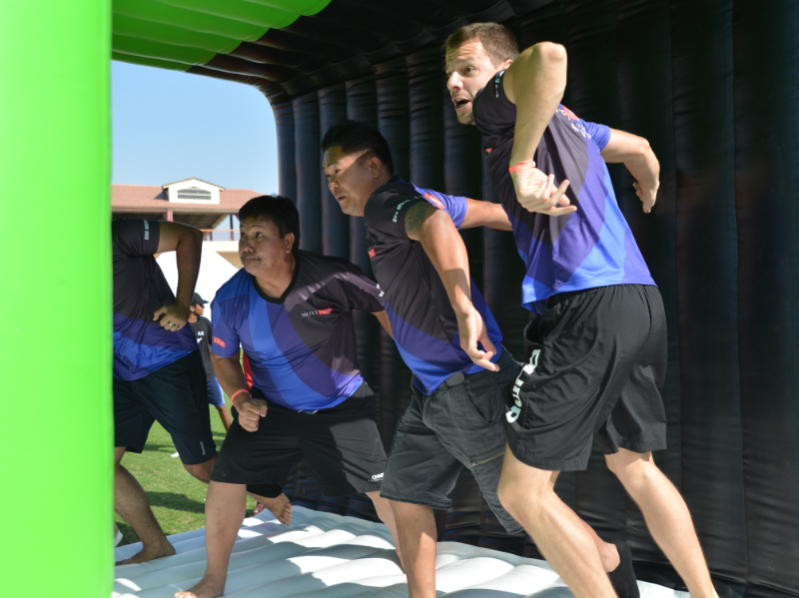 Experiential challenges that Hercules Trophy offers gives companies who sponsor the opportunity to tailor make the challenge they offer to work with and show off their brand. They are able to add give-aways and do promotions. Either way all the attendees remember interacting with your brand and having fun alongside your staff. Examples of meaningful branding and memorable experiences with Hercules Trophy can be seen from the DHL parcel packing and van delivering race or the Abu Dhabi Finance Mortgage challenge with brain teasers to see what your mortgage rate should be. Dutco Scaffolding takes you up their 3d “Dutco Dash” obstacle race showing off exactly what they do.