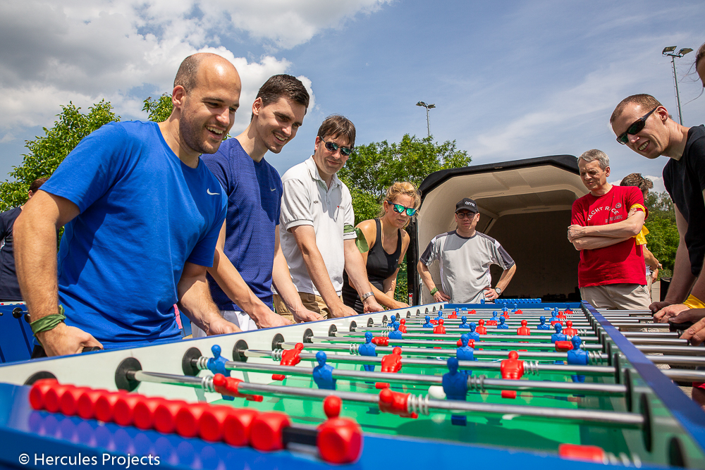 The competition started with a little brainlabour to get the brainwaves is resonance mode. A warming-up and 6 challenges were next on the agenda. Flip It, Cross Country, F1 Tire Change, Laser Clay Pigeon Shooting, Minute To Win It and Giant Table Soccer. The day ended with a typical Herculean award ceremony an happy faces.